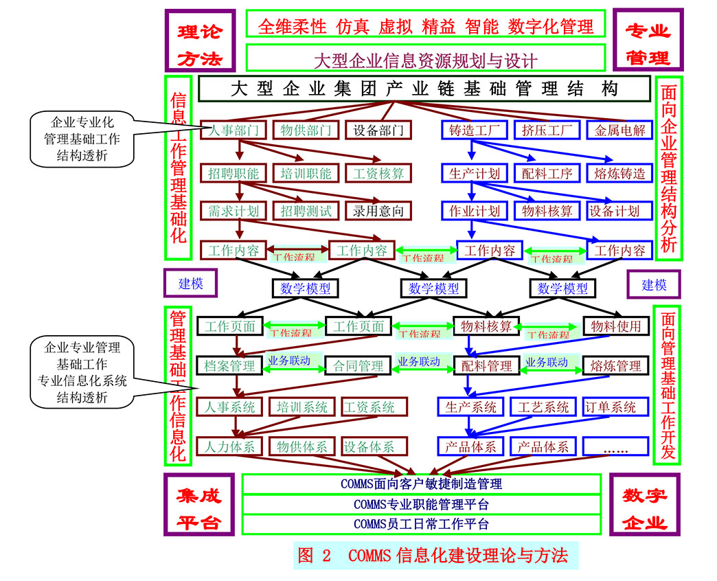 2006年提出“管理基础工作信息化、信息工作管理基础化”明确了企业管理工作与信息化工作方向与目标,围绕着企业“生产、物资供应、市场营销和财务处理”管理,对应中国国企管理结构,在原有的集成平台上完成了18个专业职能体系和30多类产品生产管控体系、共计800多项专业管理系统集成的信息化架构和实现技术方法的理论设计。